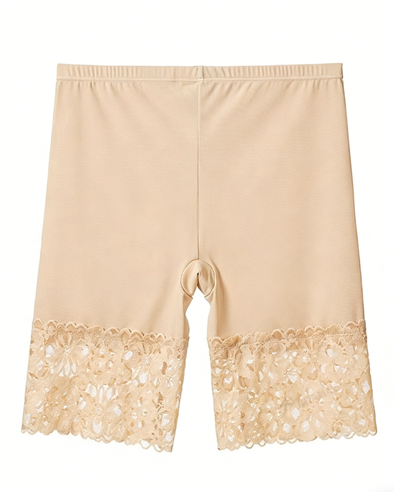 • High-Elastic Lace Hems: The hems feature 3D lace trim and built-in anti-slip silicone strips, ensuring a snug fit against the thighs and preventing rolling up even with vigorous movement.