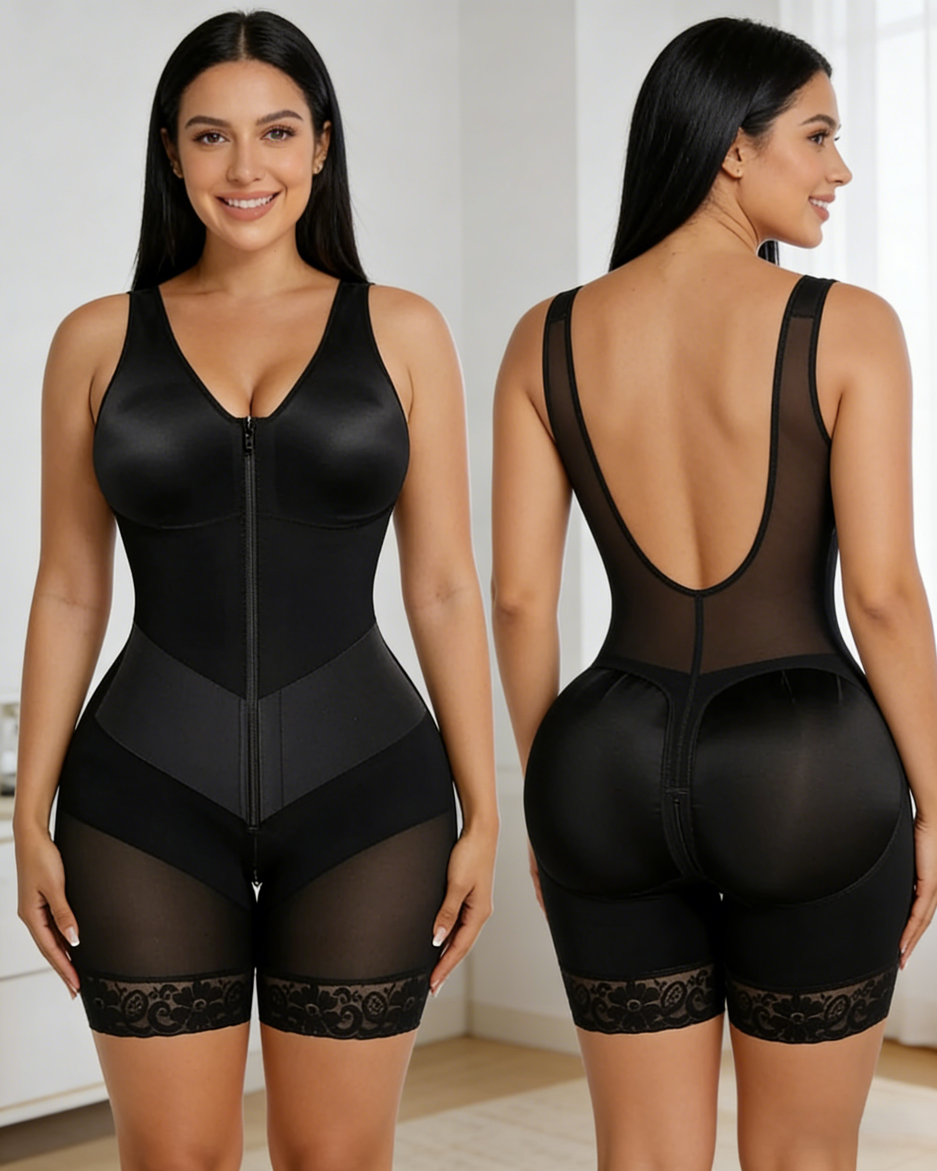 • Dual Design: Zipper + 4 Rows of 15 Hooks: The front zipper provides basic coverage, while multiple rows of adjustable hooks and loops allow for adjustable compression intensity, from gentle shaping to strong waist slimming, meeting different needs and achieving "double pressure for tummy control."
