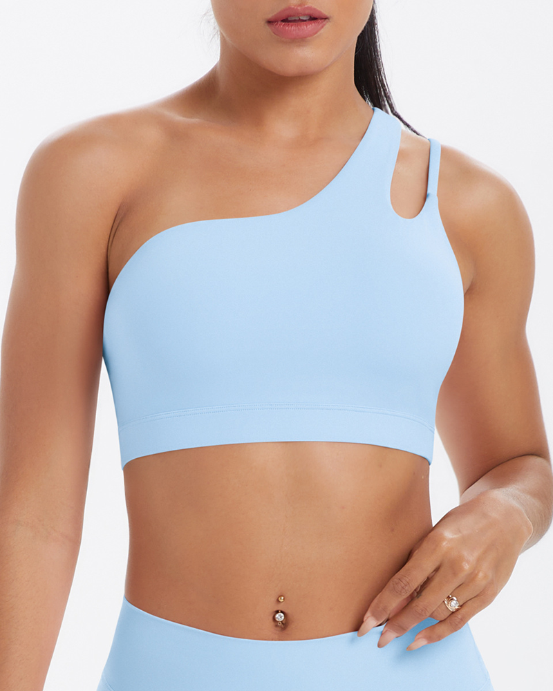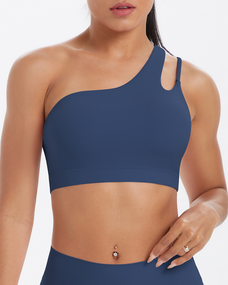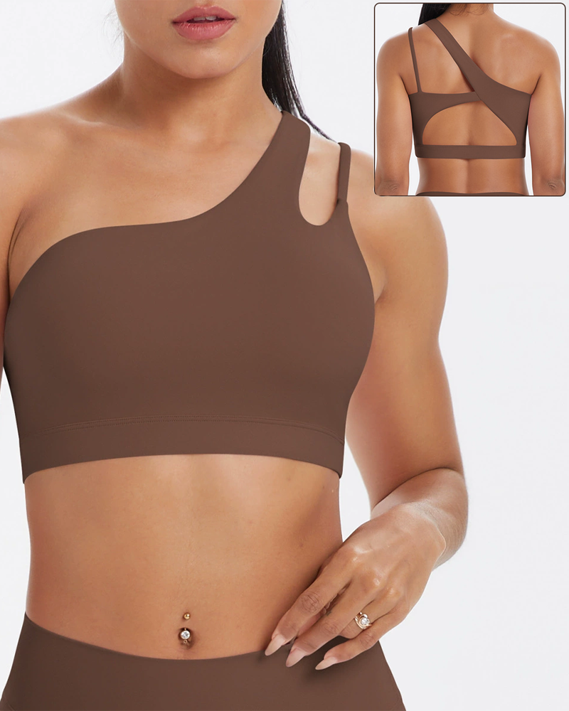 Asymmetrical One-Shoulder Backless Sports Bra