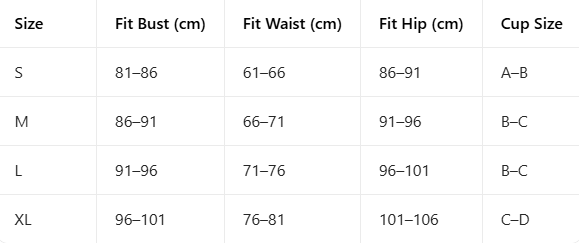 • Size depends on your measurements, so be sure to measure your bust, waist and hips before placing an order. We have a size chart on every product page. You can check it for more details. It's smaller than the normal size. So it's recommended to buy one size larger for the best fit.