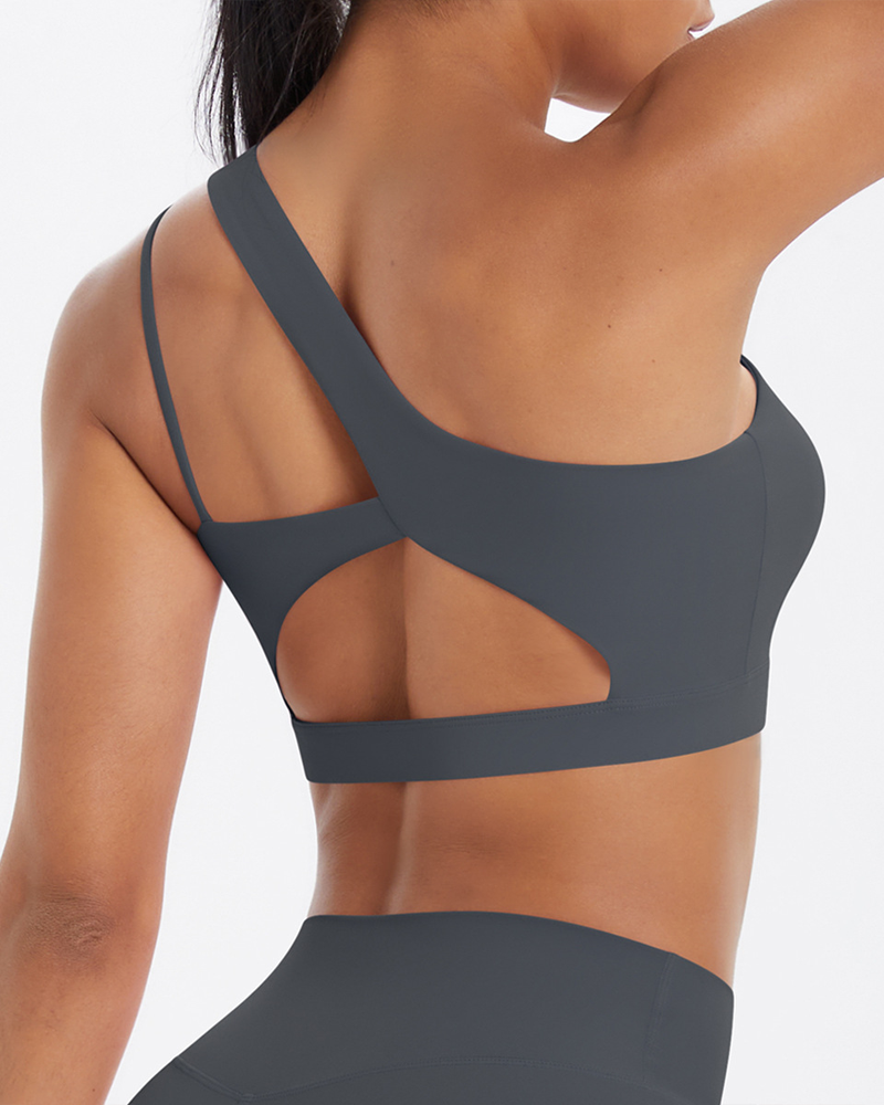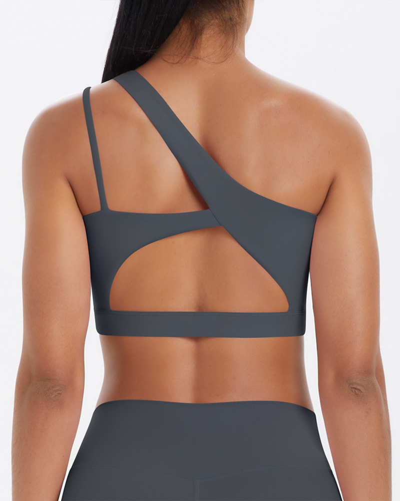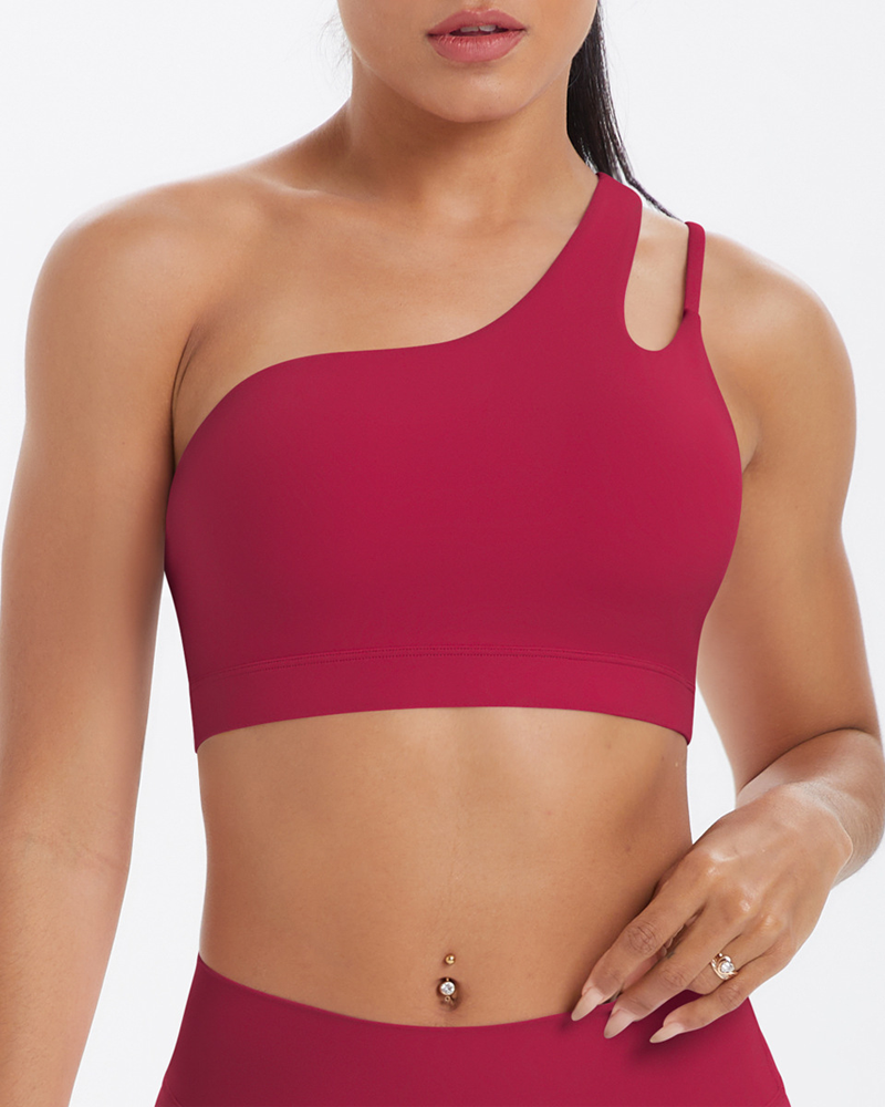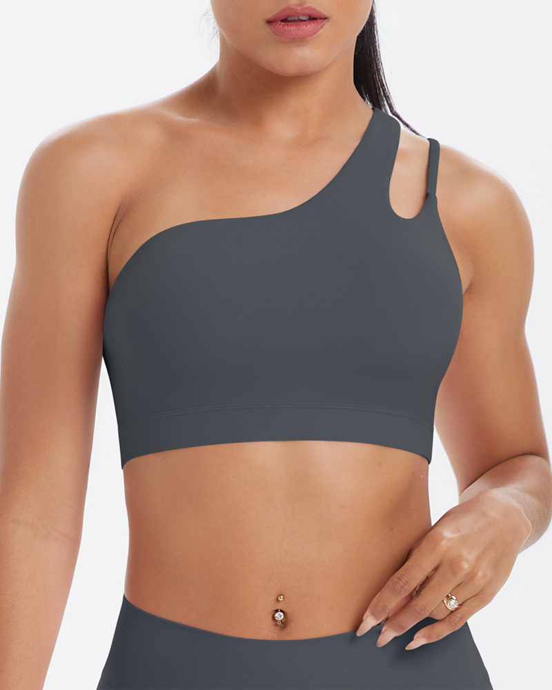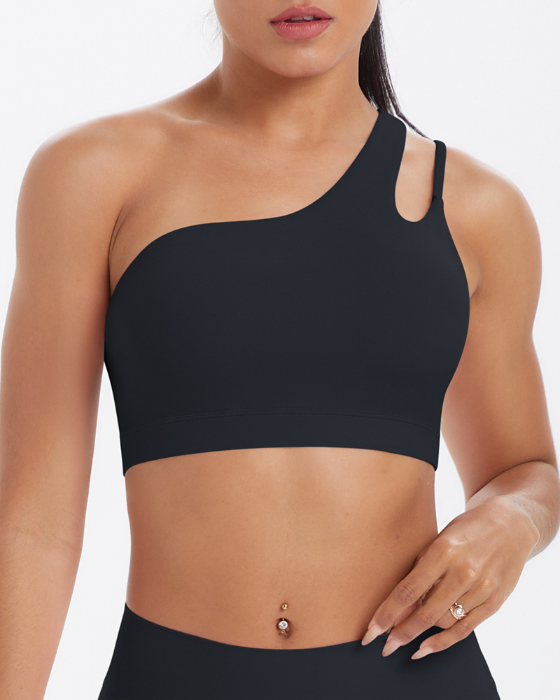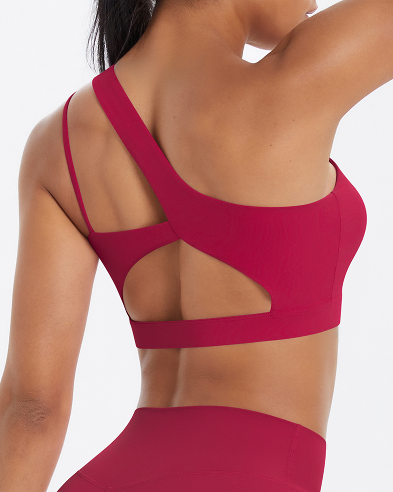 • One-Shoulder Cut: The asymmetrical design of a wide shoulder strap on one side combined with a thin shoulder strap breaks away from the monotony of traditional sports bras, revealing delicate collarbones and shoulder lines for a sophisticated and distinctive look.