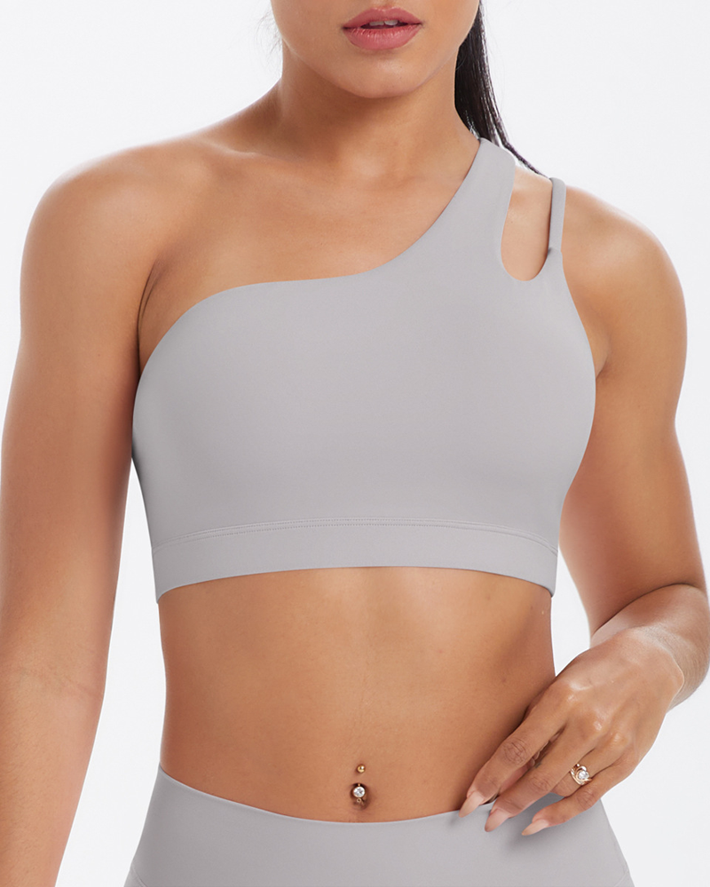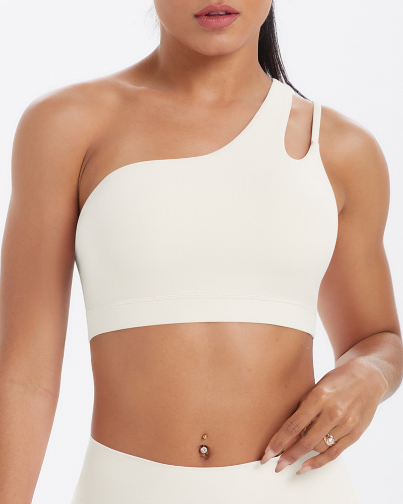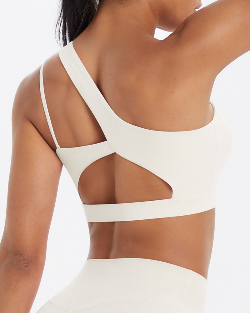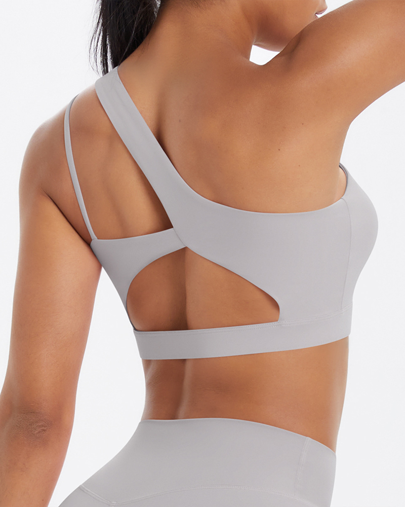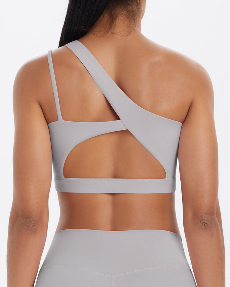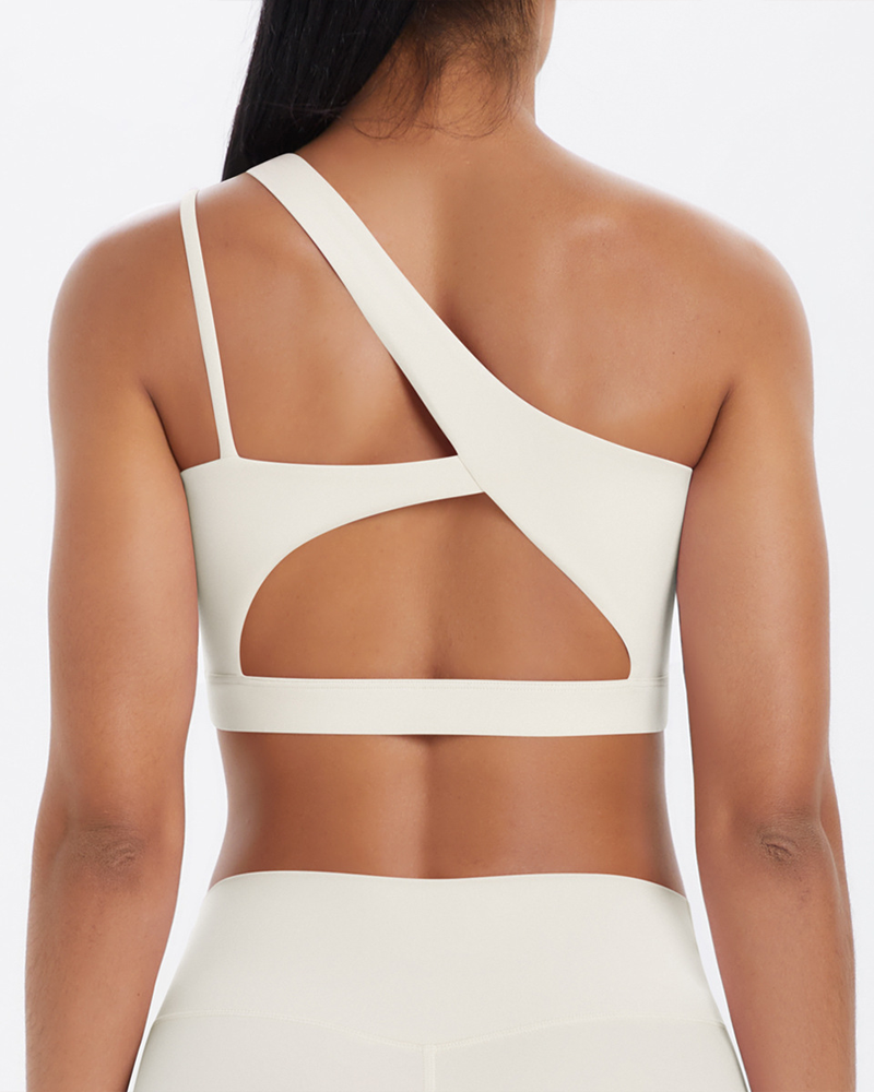 • One-Shoulder Cut: The asymmetrical design of a wide shoulder strap on one side combined with a thin shoulder strap breaks away from the monotony of traditional sports bras, revealing delicate collarbones and shoulder lines for a sophisticated and distinctive look.