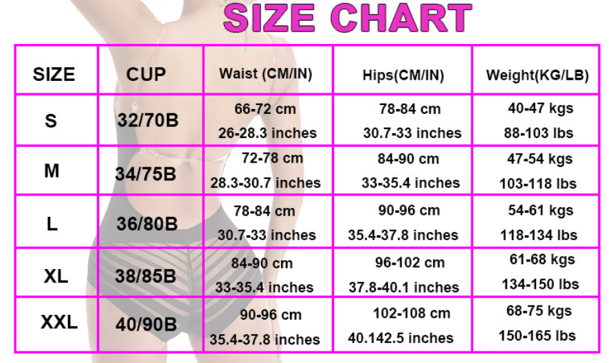 Our shapewear is designed to slim and smooth, so picking a size too small will cause bulges and discomfort.
